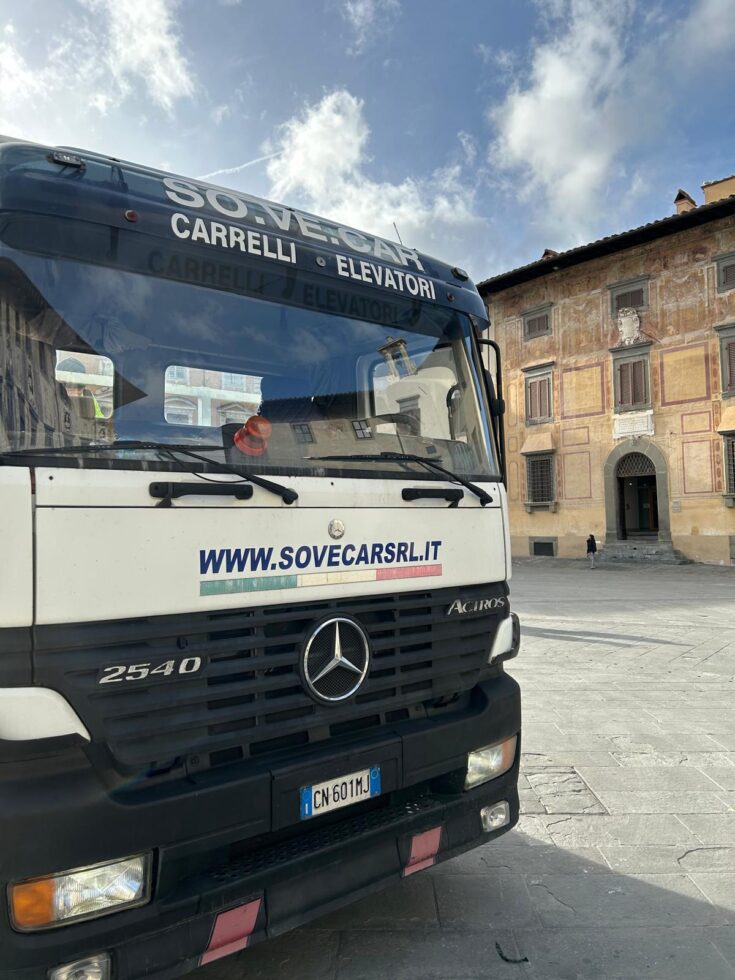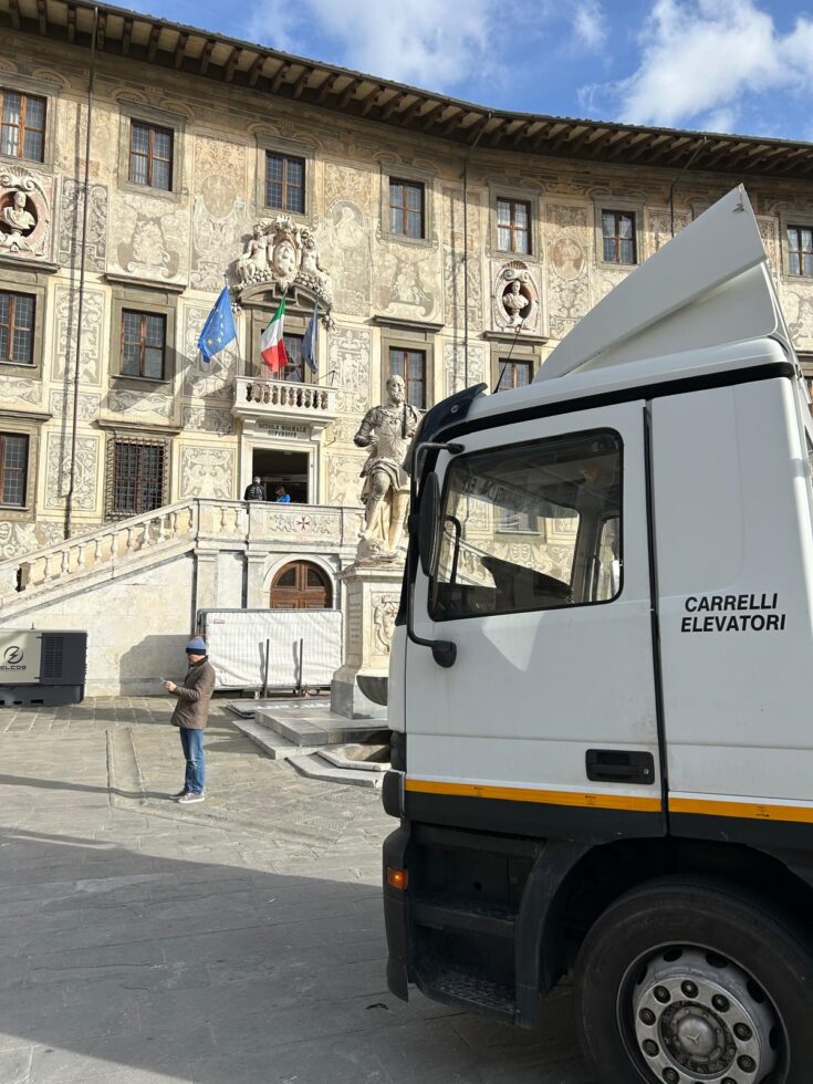 Durante le festività siamo stati nel cuore della città, davanti alla Scuola Normale di Pisa, con il nostro camion e  carrello elevatore a noleggio per eventi.